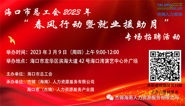 6月24日上午9時-12時,由海口市龍華區(qū)人力資源和社會保障局、海口市(龍華)人力資源服務產業(yè)園主辦,杰...